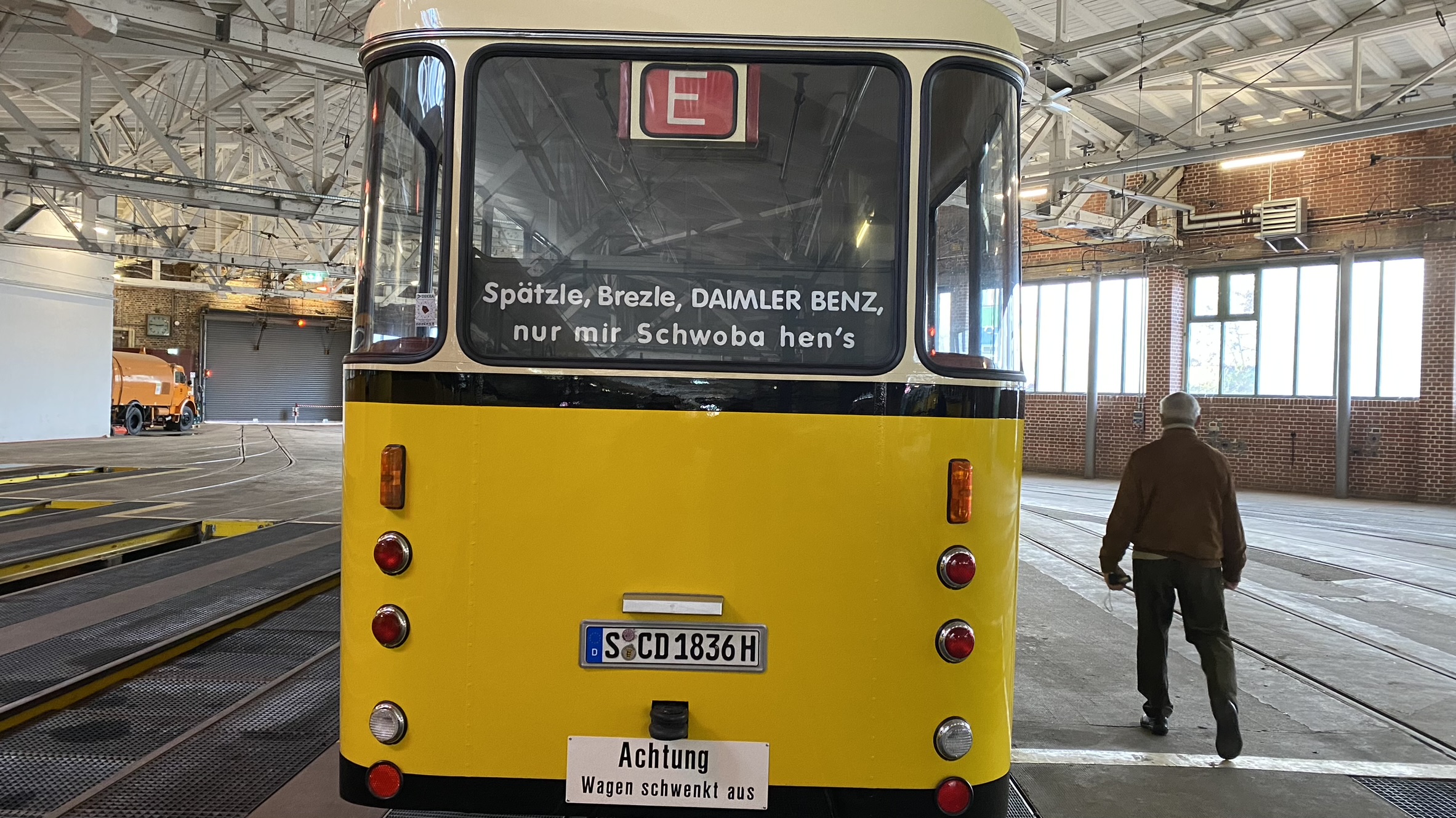 Zuerst konnten wir interessante Eindrücke in der Halle vom SSB-Museum sammeln. Nach einer kleinen Stärkung mit Lebkuchen und Glühwein begann die Fahrt mit der Oldtimerlinie 23 über den Norden quer durch Stuttgart bis hinauf zum Fernsehturm und zurück.