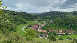 Am Wanderparkplatz Reichartsberg angekommen, erwartete uns ein weitere Überraschung: Gertrud Zimmermann kredenzte uns den traditionellen Wander-Umtrunk. Unser Weg zum Abstieg in das Lautertal führte uns über naturbelassene Wege vorbei an Wiesen, Wälder und Äckern. Ein Teil der Gruppe wagte den steilen Ab- und Wiederanstieg auf einem Pfad mit alpinem Charakter. Alles halb so wild, es sind alle wieder gut oben angekommen und haben den Ausblick auf die Burgruine Bichishausen genossen.