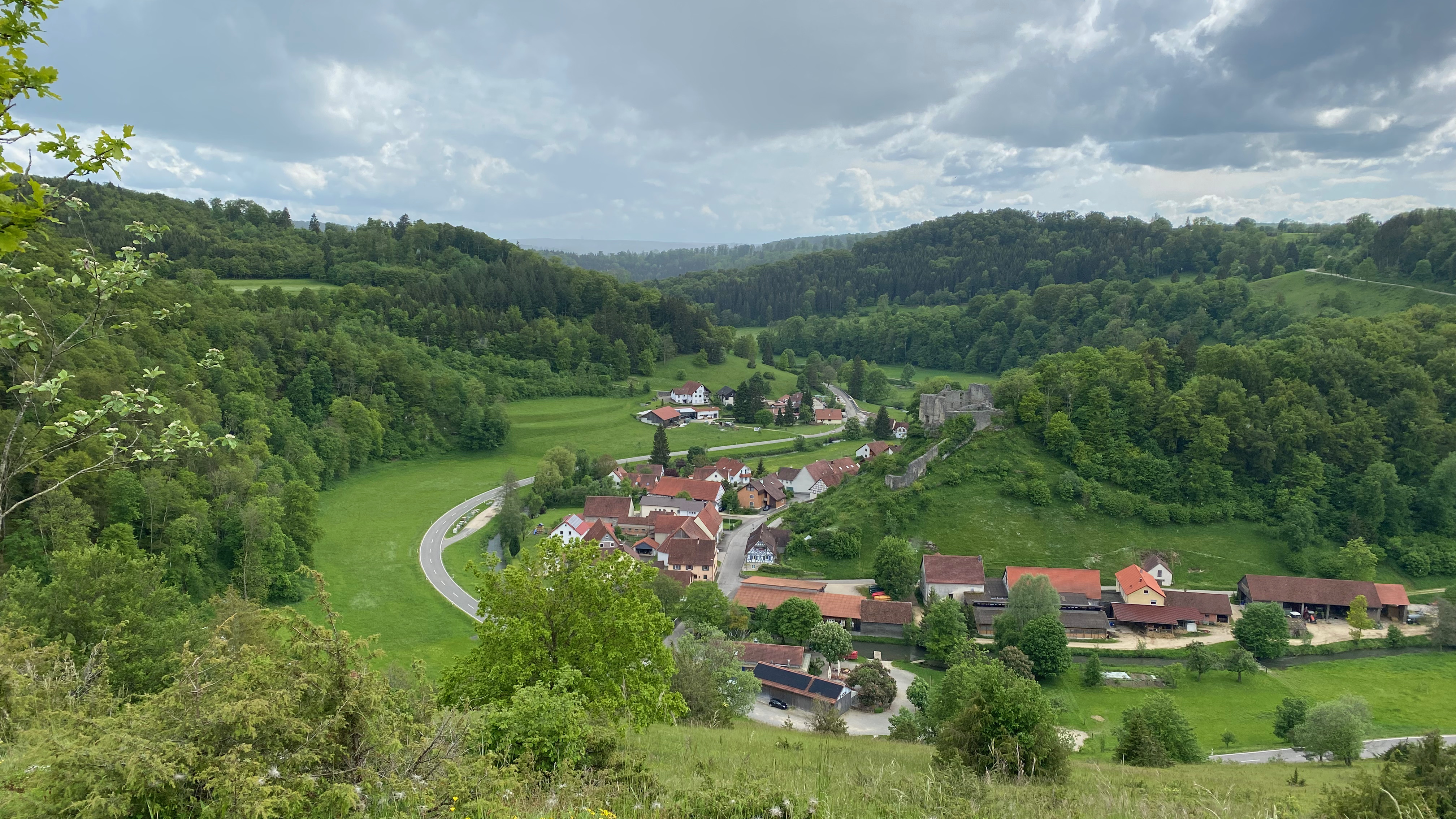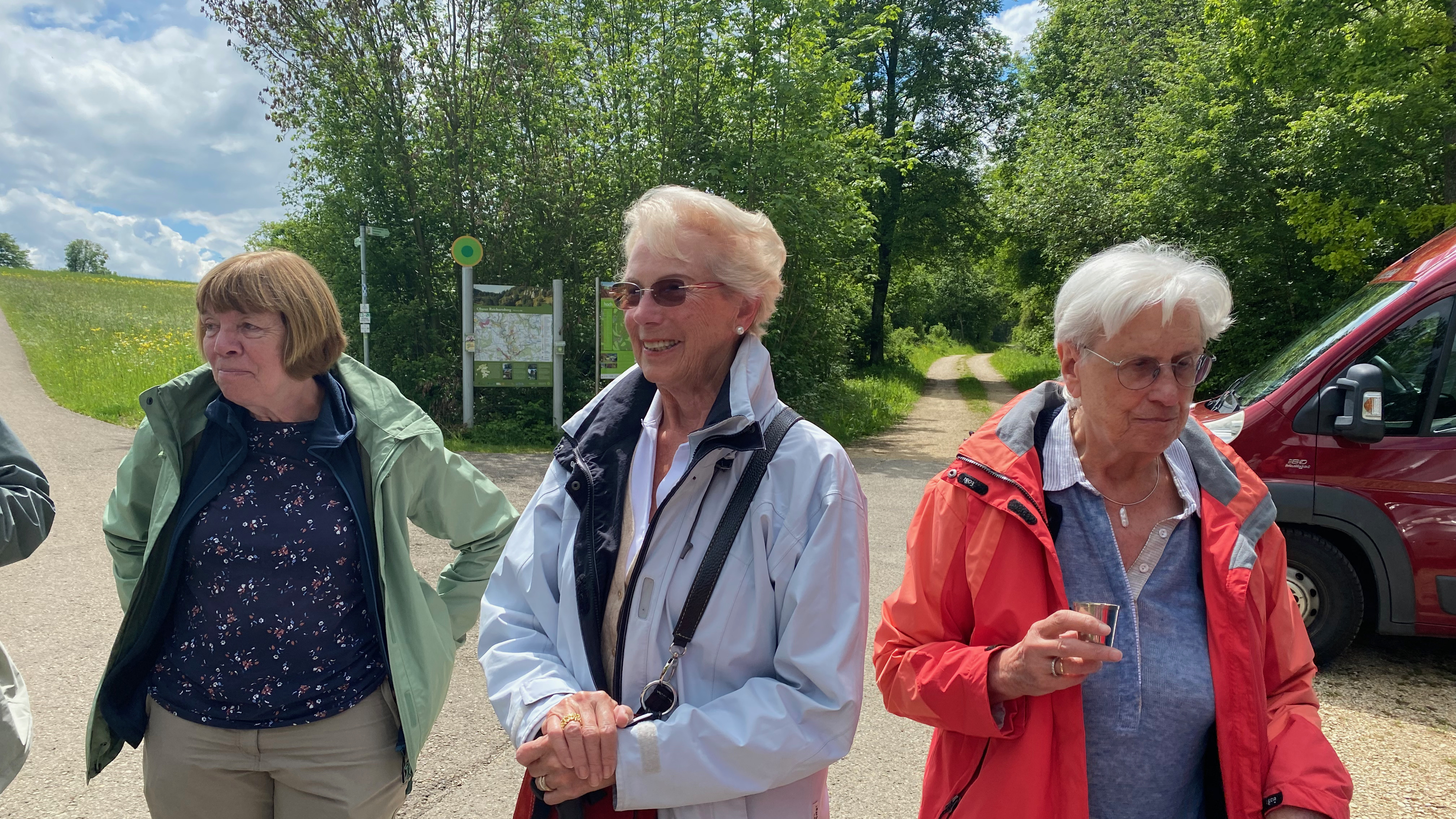 Am Wanderparkplatz Reichartsberg angekommen, erwartete uns ein weitere Überraschung: Gertrud Zimmermann kredenzte uns den traditionellen Wander-Umtrunk. Unser Weg zum Abstieg in das Lautertal führte uns über naturbelassene Wege vorbei an Wiesen, Wälder und Äckern. Ein Teil der Gruppe wagte den steilen Ab- und Wiederanstieg auf einem Pfad mit alpinem Charakter. Alles halb so wild, es sind alle wieder gut oben angekommen und haben den Ausblick auf die Burgruine Bichishausen genossen.